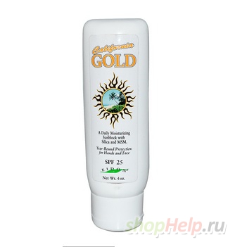 California Gold, Moisturizing Sunblock – крем для загара с кремнеземом и MSM. Защищает лицо и руки.